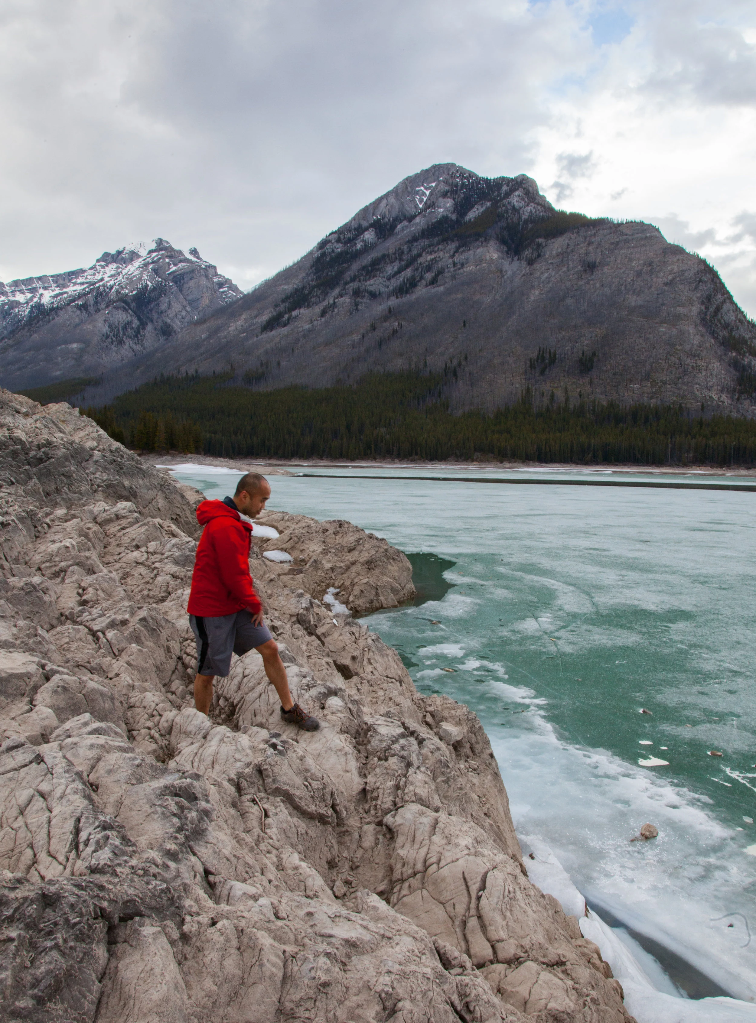 We poked around Lake Minnewanka for a bit while Brian attempted to break the ice by throwing rocks at it. It was still very thick and he failed at his quest. Eventually a thunderstorm rolled in so we got back into the car and headed into town for a steak dinner at Chuck’s Steakhouse. 100% recommend, but maybe get a reservation so you don't have to sit at the bar like we did.